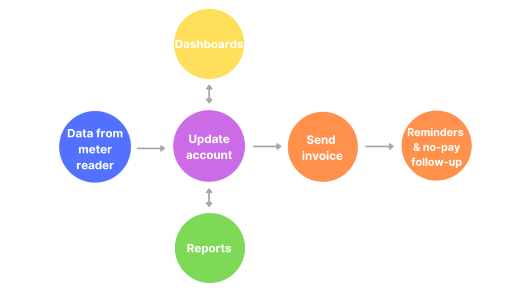 As an energy provider, you can set up a workflow to automatically send your end-user clients invoices based on their consumption data from a meter reader application.